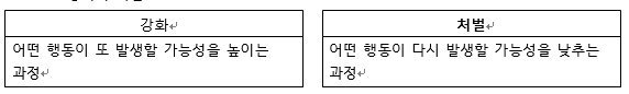 - 예) 학교에서 잘하려고 노력하는 청소년은 과거에 이러한 행동에 대해 강화를 받았거나 혹은 이렇게 행동하지 않았을 때 처벌을 받았기 때문이다.