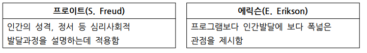 (1)대표학자:  프로이트(S.  Freud)와  에릭슨(E.  Erikson)